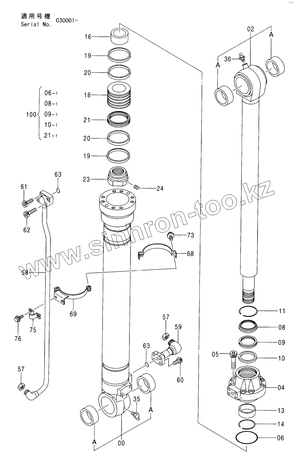 Каталог запасных частей к технике: Hitachi Компоненты ZX-330. CYL., BUCKET