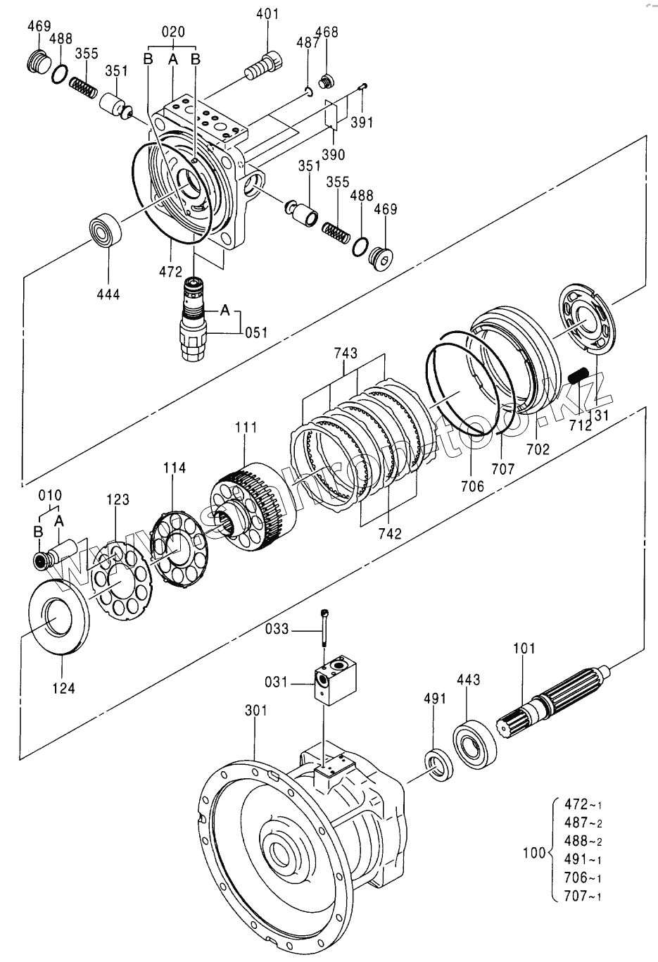 Каталог запасных частей к технике: Hitachi Компоненты ZX-330. MOTOR, OIL (SWING)