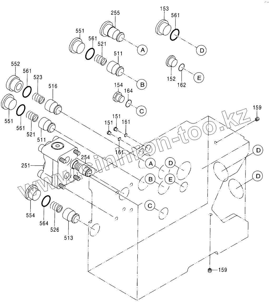 Каталог запасных частей к технике: Hitachi Компоненты ZX-330. VALVE, CONTROL (4/6)