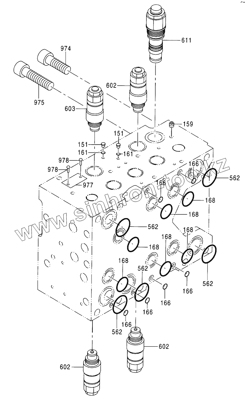 Каталог запасных частей к технике: Hitachi Компоненты ZX-330. VALVE, CONTROL (6/6)