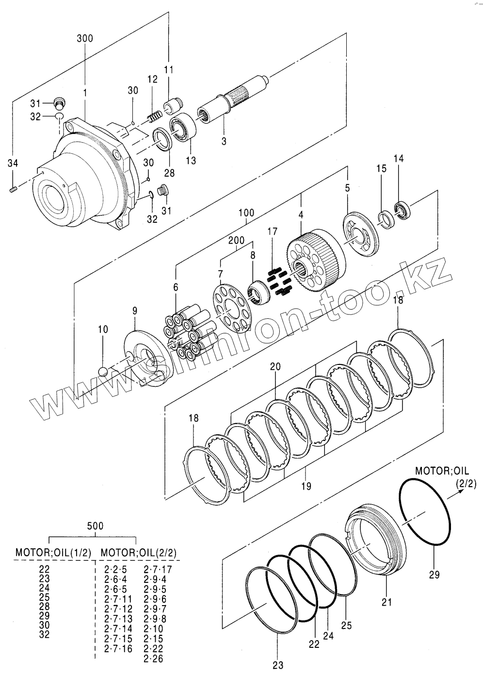 Каталог запасных частей к технике: Hitachi Компоненты ZX-450. MOTOR,OIL (1/2)