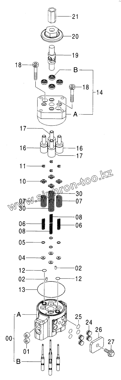 Каталог запасных частей к технике: Hitachi Компоненты ZX-450. VALVE,PILOT (FRONT & SWING)