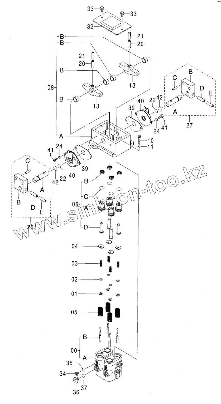 Каталог запасных частей к технике: Hitachi Компоненты ZX-450. VALVE,PILOT (TRAVEL)