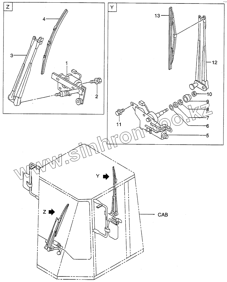 Каталог запасных частей к технике: Hitachi LX190-7/LX230-7. CAB (WIPER)