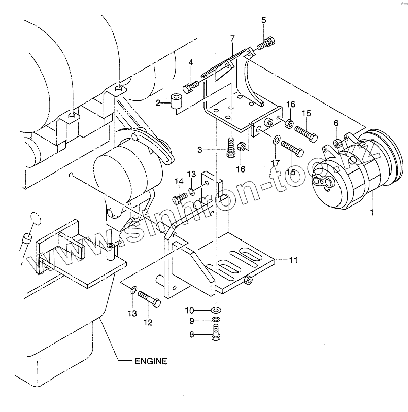 Каталог запасных частей к технике: Hitachi LX190-7/LX230-7. COMPRESSOR MOUNT
