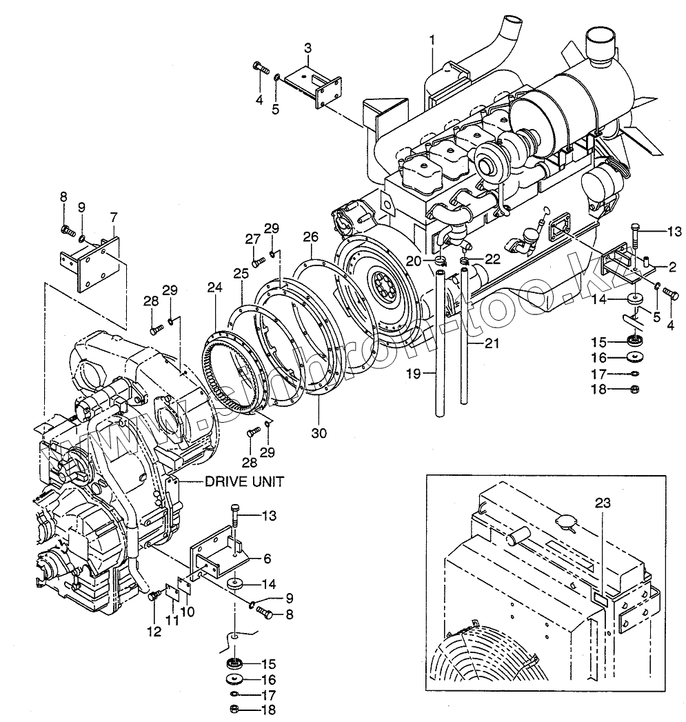 Каталог запасных частей к технике: Hitachi LX190-7/LX230-7. ENGINE MOUNT