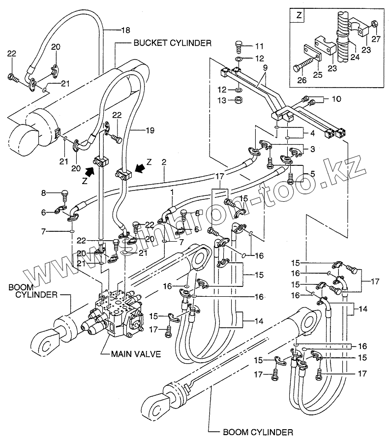 Каталог запасных частей к технике: Hitachi LX190-7/LX230-7. HYDRAULIC SYSTEM (BOOM & BUCKET)