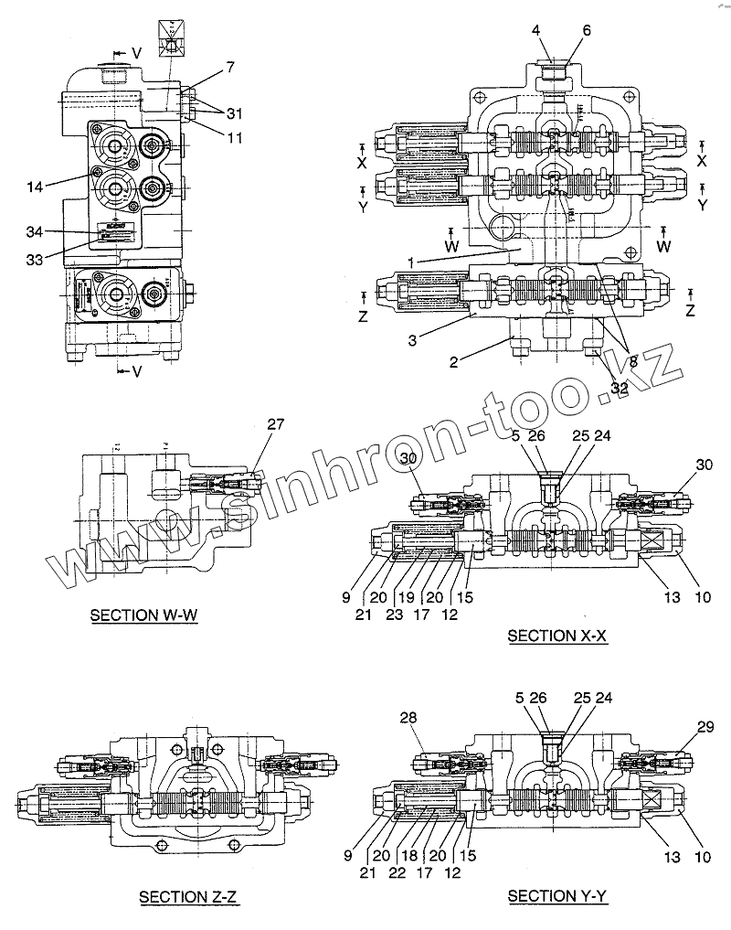 Каталог запасных частей к технике: Hitachi LX190-7/LX230-7. MAIN VALE (AP3) (0P)