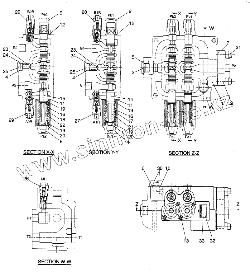 Каталог запасных частей к технике: Hitachi LX190-7/LX230-7. MAIN VALVE