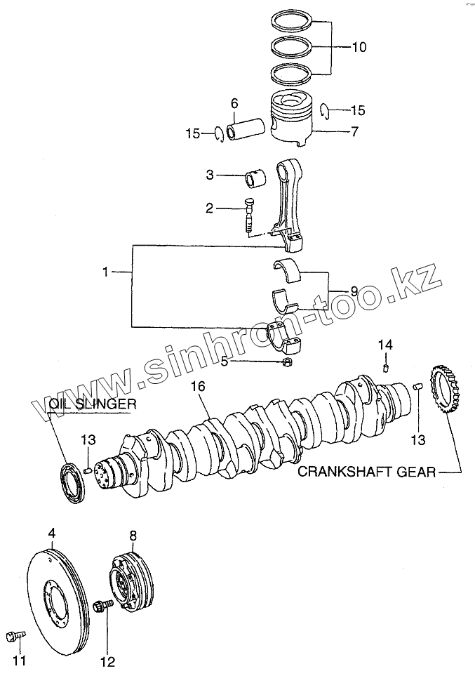Каталог запасных частей к технике: Hitachi LX190-7/LX230-7. PISTON & CRANKSHAFT