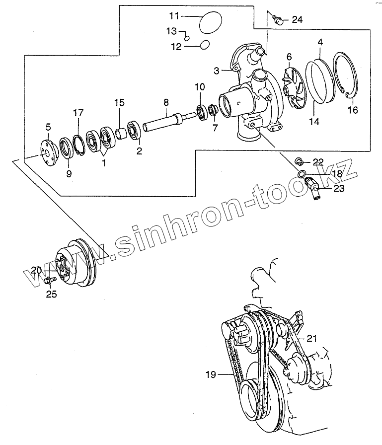 Каталог запасных частей к технике: Hitachi LX190-7/LX230-7. WATER PUMP
