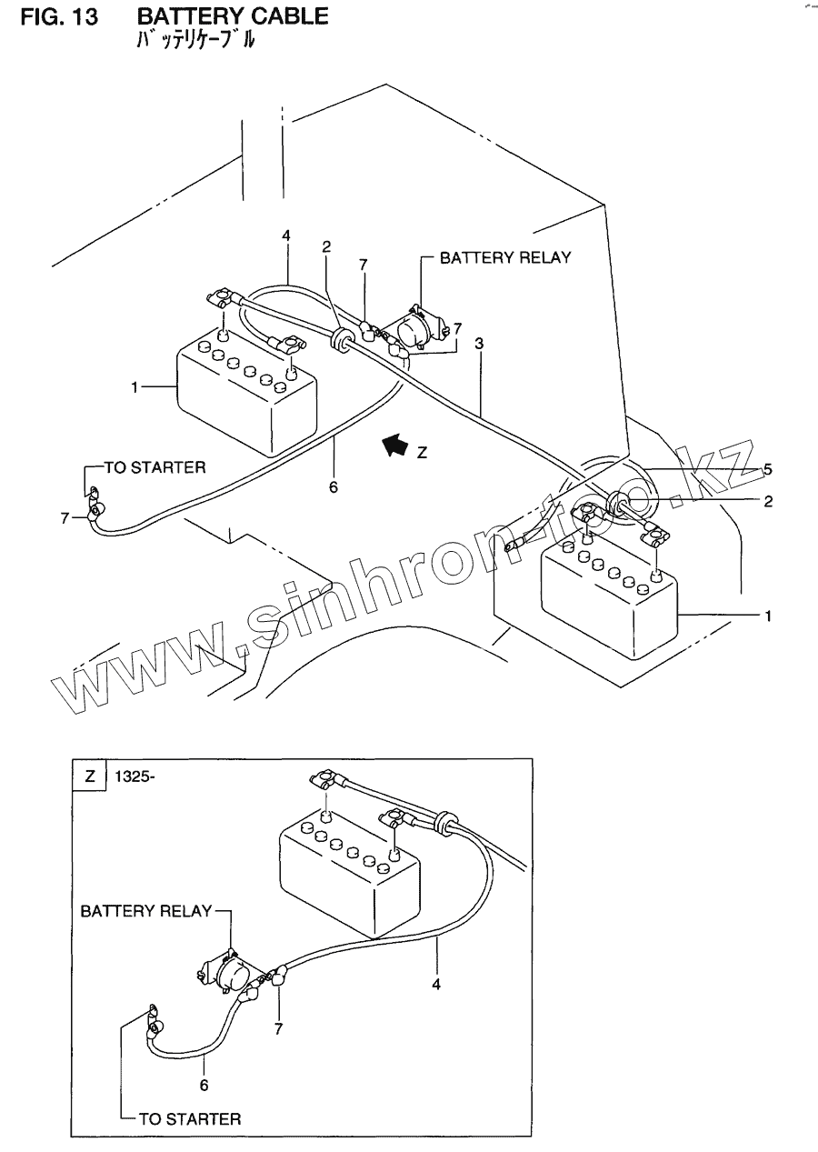 Каталог запасных частей к технике: Hitachi LX-110-7. Battery cable