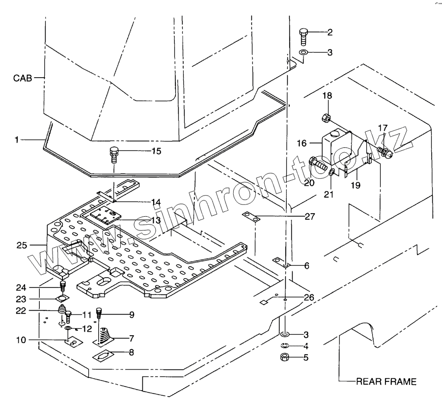 Каталог запасных частей к технике: Hitachi LX-110-7. Cab(mount)(SCB001-648)(OP)