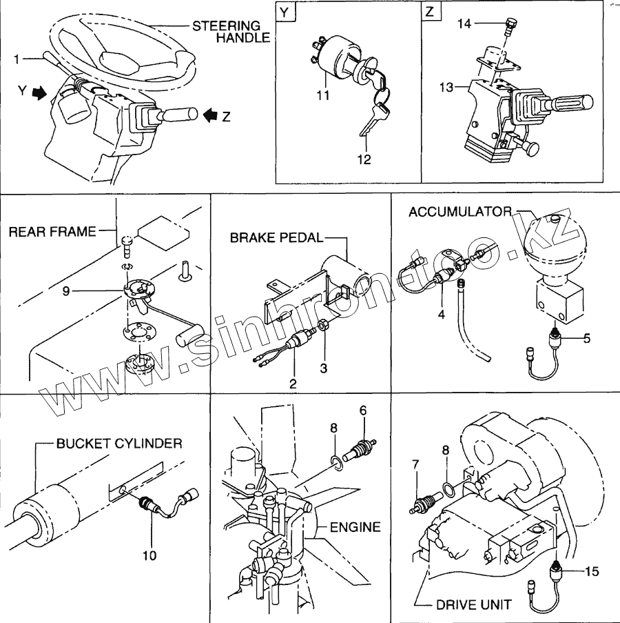 Каталог запасных частей к технике: Hitachi LX-110-7. Electrical parts(switch)