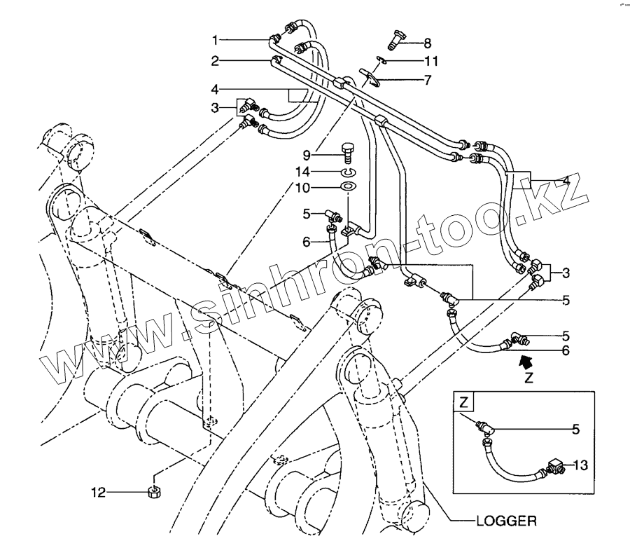 Каталог запасных частей к технике: Hitachi LX-110-7. Logger(piping)(TL047-648)