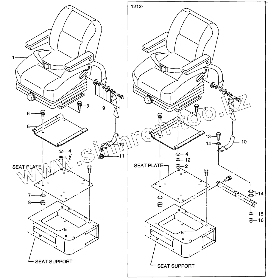 Каталог запасных частей к технике: Hitachi LX-110-7. Seat mount(-1355)