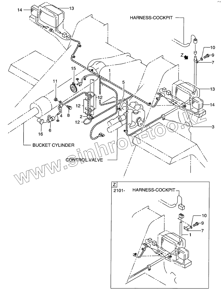 Каталог запасных частей к технике: Hitachi LX-110-7. Wiring(front frame)