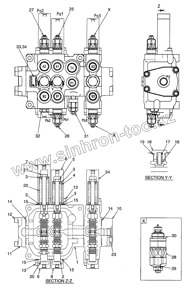 Каталог запасных частей к технике: Hitachi LX-130-7. CONTROL VALVE (AP3)(OP)