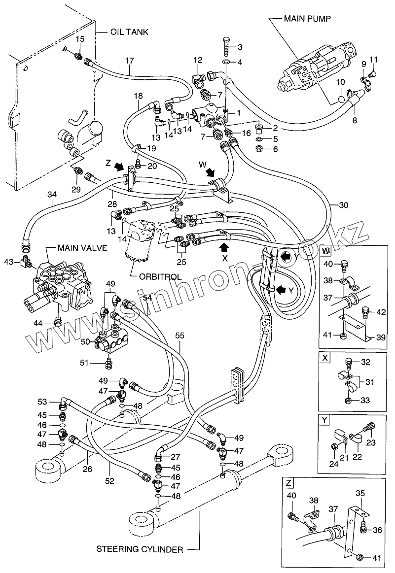 Каталог запасных частей к технике: Hitachi LX-130-7. HYDRAULIC SYSTEM( STEERING) (-1105)
