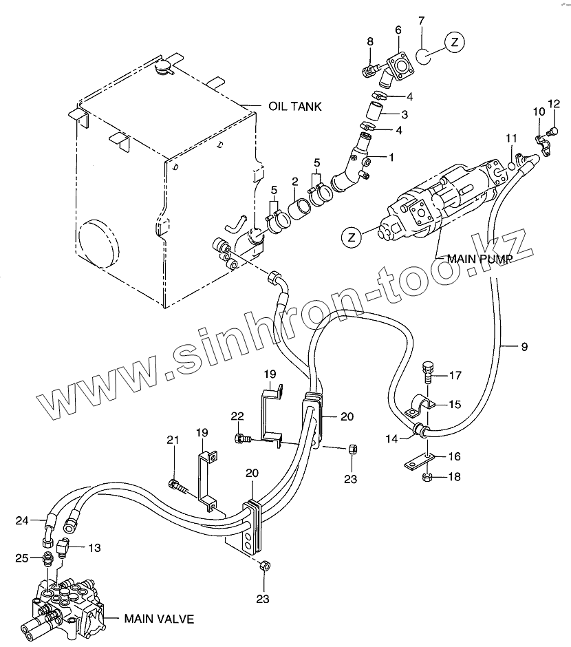 Каталог запасных частей к технике: Hitachi LX-130-7. HYDRAULIC SYSTEM (SUCTION)