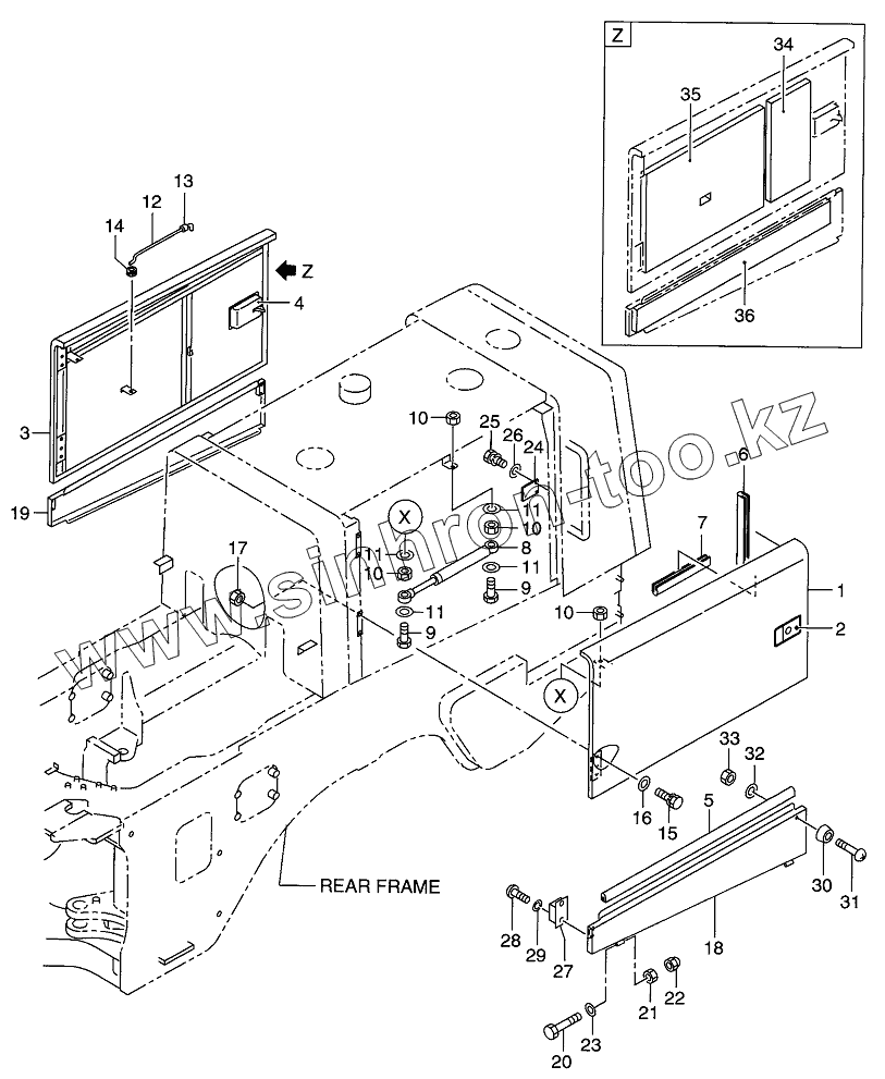Каталог запасных частей к технике: Hitachi LX-130-7. SIDE PANEL