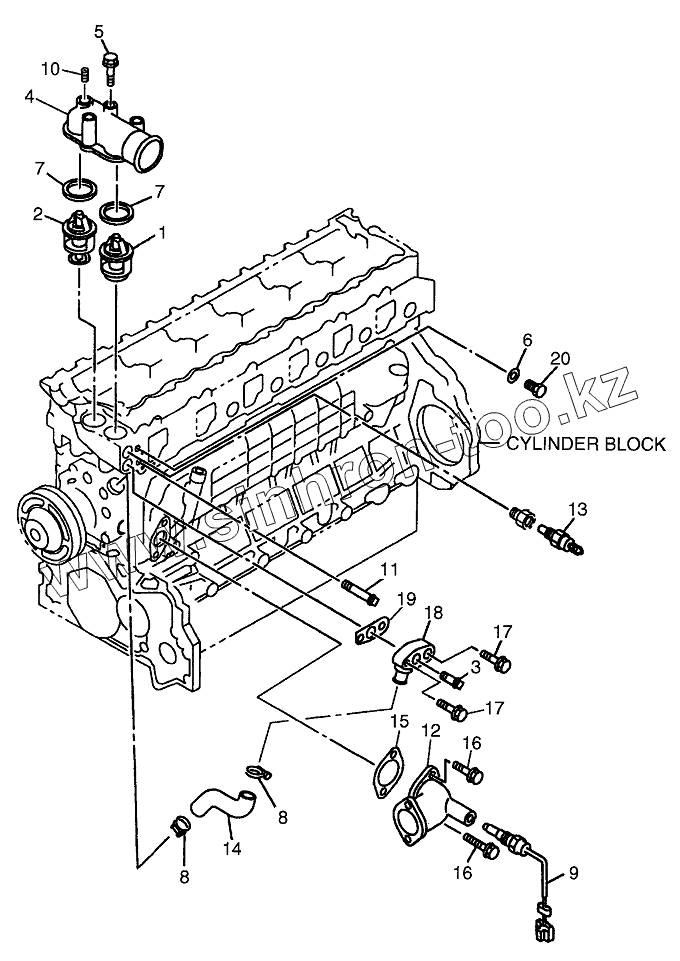 Каталог запасных частей к технике: Hitachi LX-130-7. WATER HOUSING & THERMOSTAT