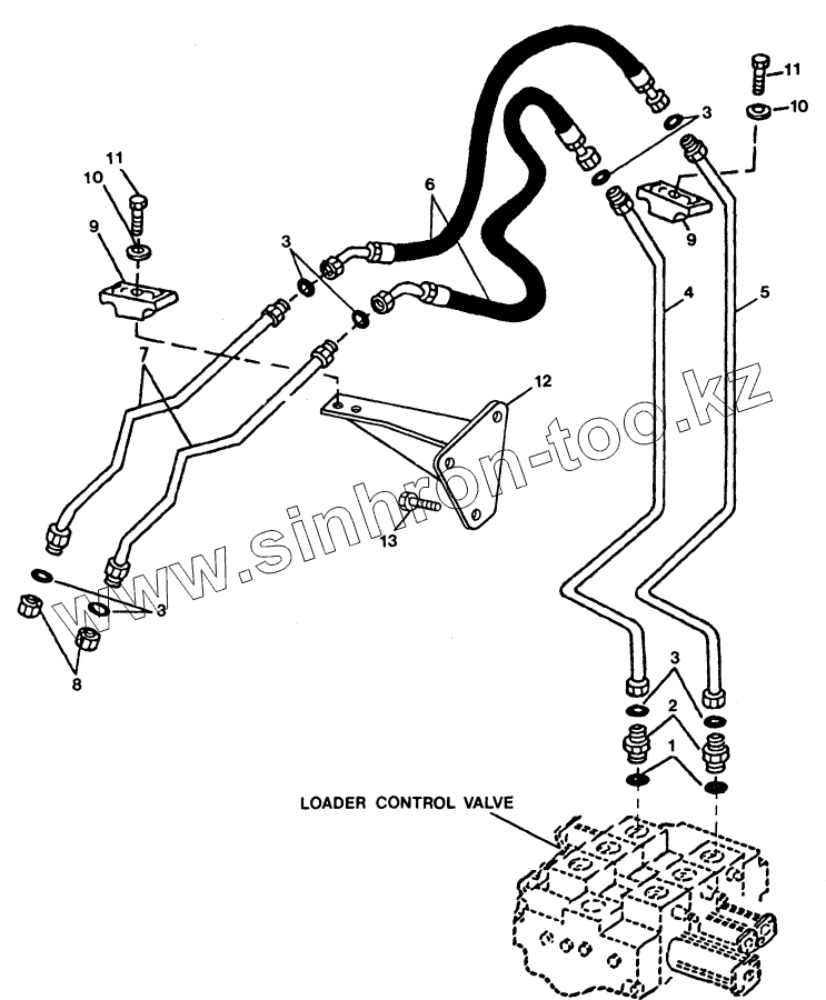 HYDRAULIC SYSTEM - LOADER CONTROL VALVE AND STEERING VALVE HOSES