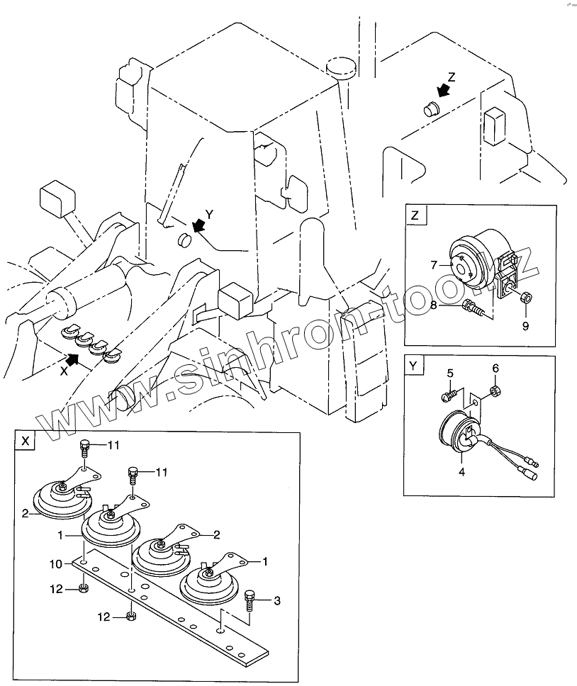 Каталог запасных частей к технике: Hitachi LX-160-7. ELECTRICAL PARTS (HORN & BUZZER)