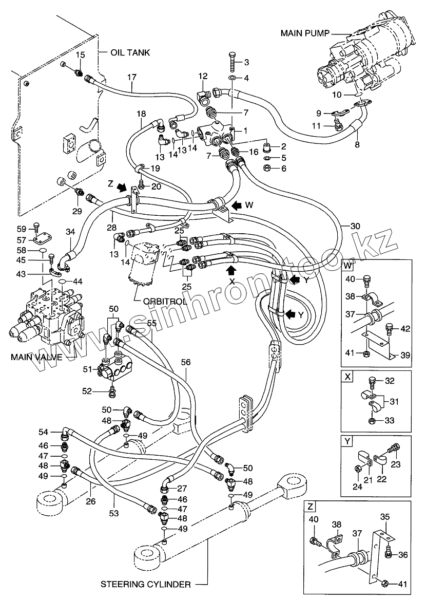 Каталог запасных частей к технике: Hitachi LX-160-7. HYDRAULIC SYSTEM (STEERING)(-1111)