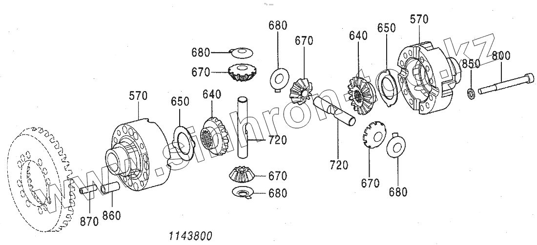 Каталог запасных частей к технике: Hitachi Zaxis 190-3. AXLE, FRONT (2/6) (WIDE)