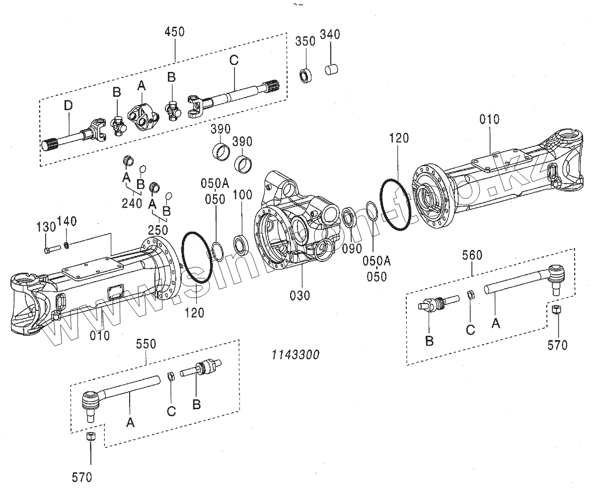 Каталог запасных частей к технике: Hitachi Zaxis 190-3. AXLE, FRONT (3/6)