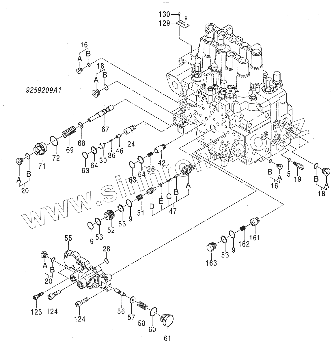 Каталог запасных частей к технике: Hitachi Zaxis 190-3. VALVE, CONTROL (1/8)