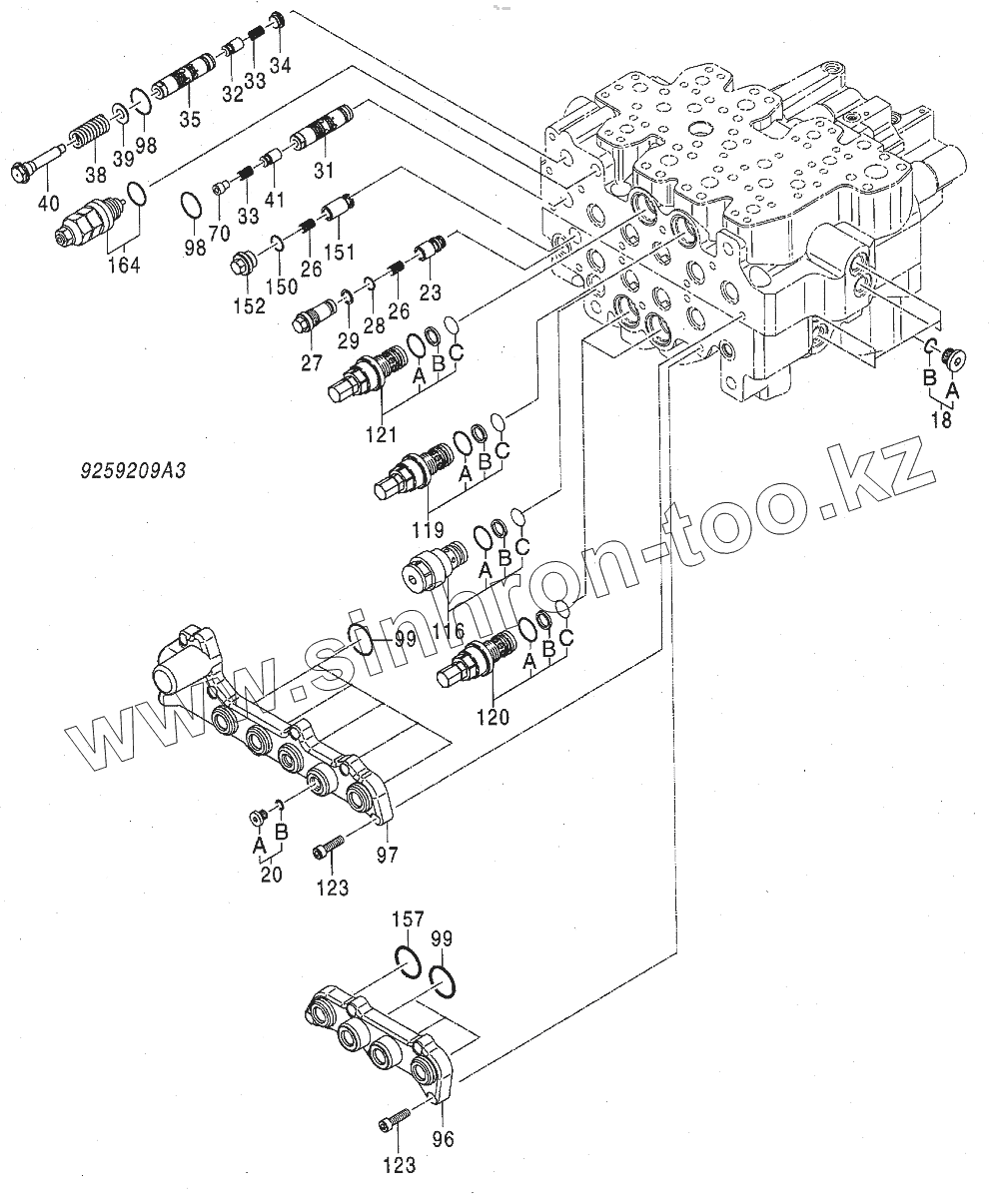 Каталог запасных частей к технике: Hitachi Zaxis 190-3. VALVE, CONTROL (3/8)