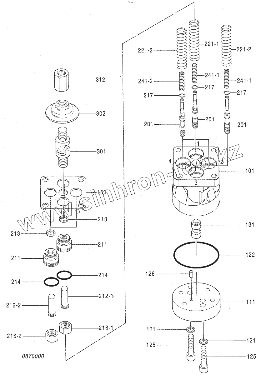Каталог запасных частей к технике: Hitachi Zaxis 190-3. VALVE, PILOT (FRONT, SWING)