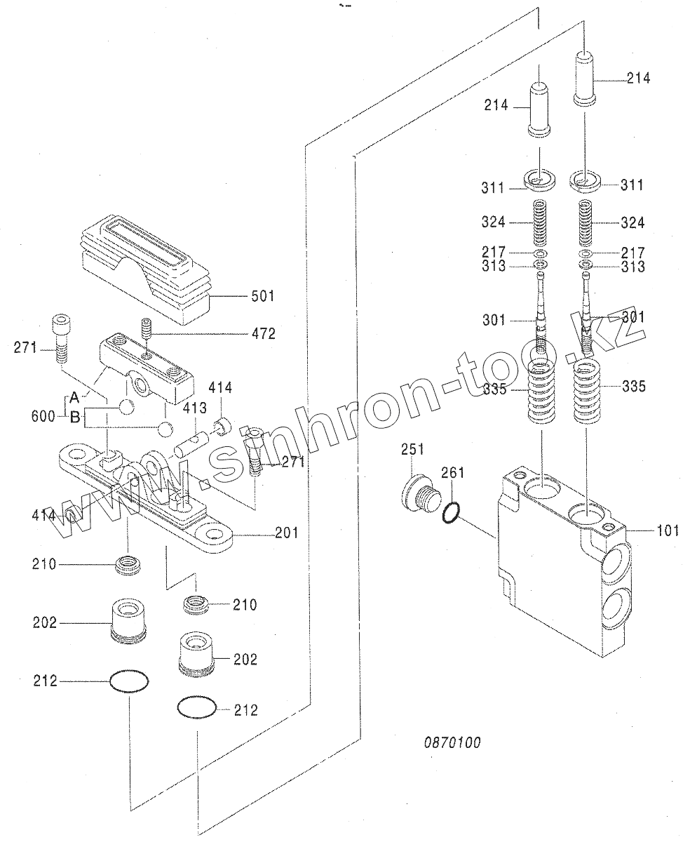 Каталог запасных частей к технике: Hitachi Zaxis 190-3. VALVE, PILOT (TRAVEL)