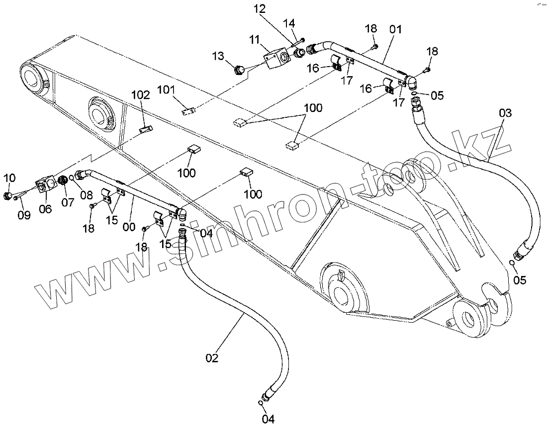 Каталог запасных частей к технике: Hitachi ZAXIS 330-5G. BREAKER, CRUSHER PIPING (2.67mARM)