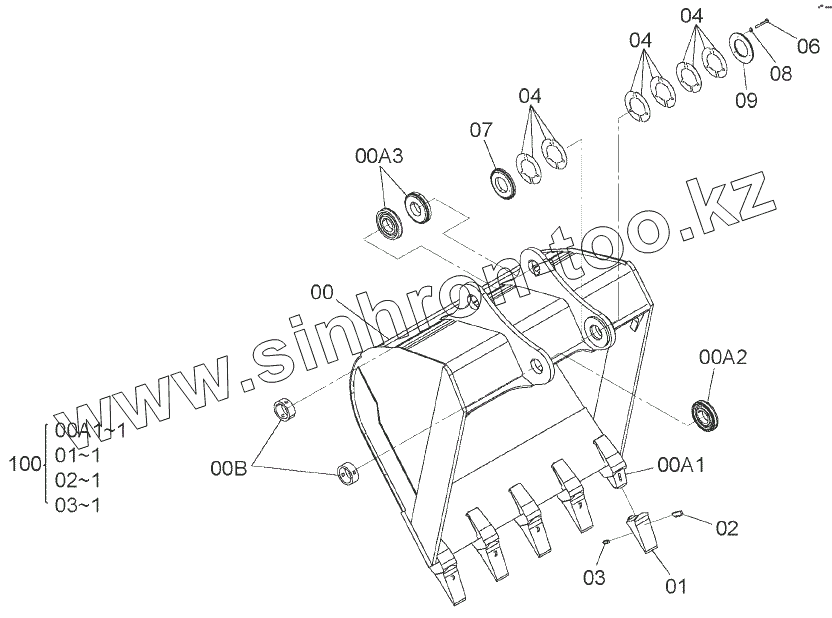 Каталог запасных частей к технике: Hitachi ZAXIS 330-5G. BUCKET 1.86m3 (JIS 94)