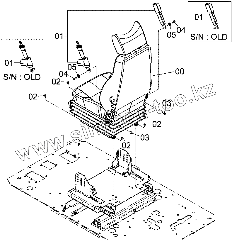 Каталог запасных частей к технике: Hitachi ZAXIS 330-5G. SUSPENSION SEAT PARTS (KAB)