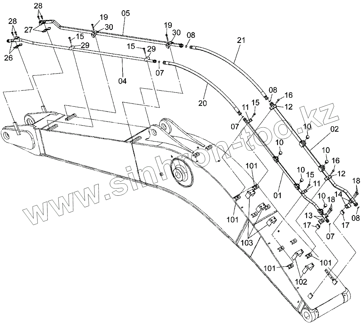 Каталог запасных частей к технике: Hitachi ZAXIS 350H-5G. BREAKER, CRUSHER PIPING (BOOM)