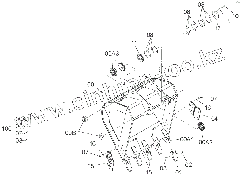 Каталог запасных частей к технике: Hitachi ZAXIS 350H-5G. BUCKET 1.62m3 (JIS 94)