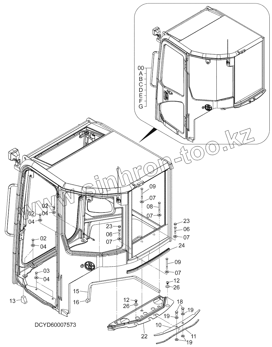 Каталог запасных частей к технике: Hitachi ZAXIS 48U-5A. CAB [RUSSIA], S/N: 030002-