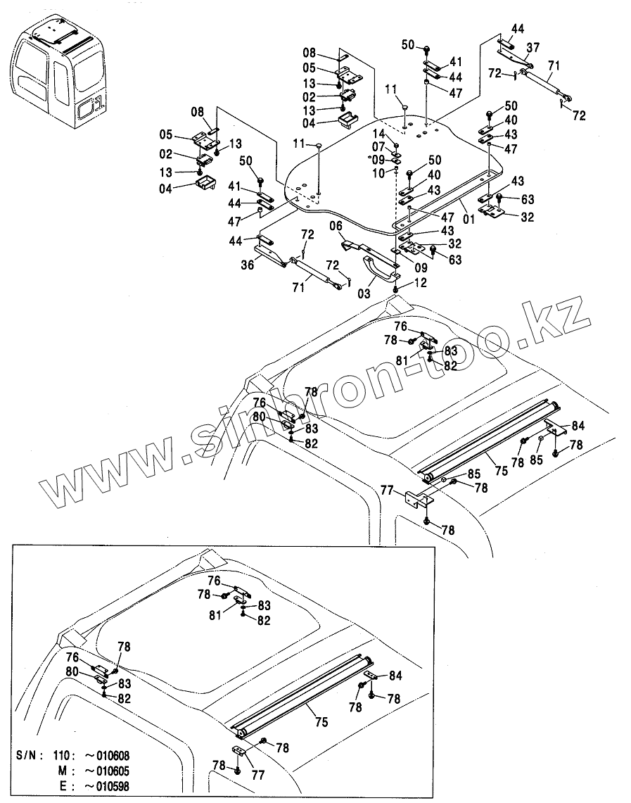 Каталог запасных частей к технике: Hitachi ZX-110. CAB (6)