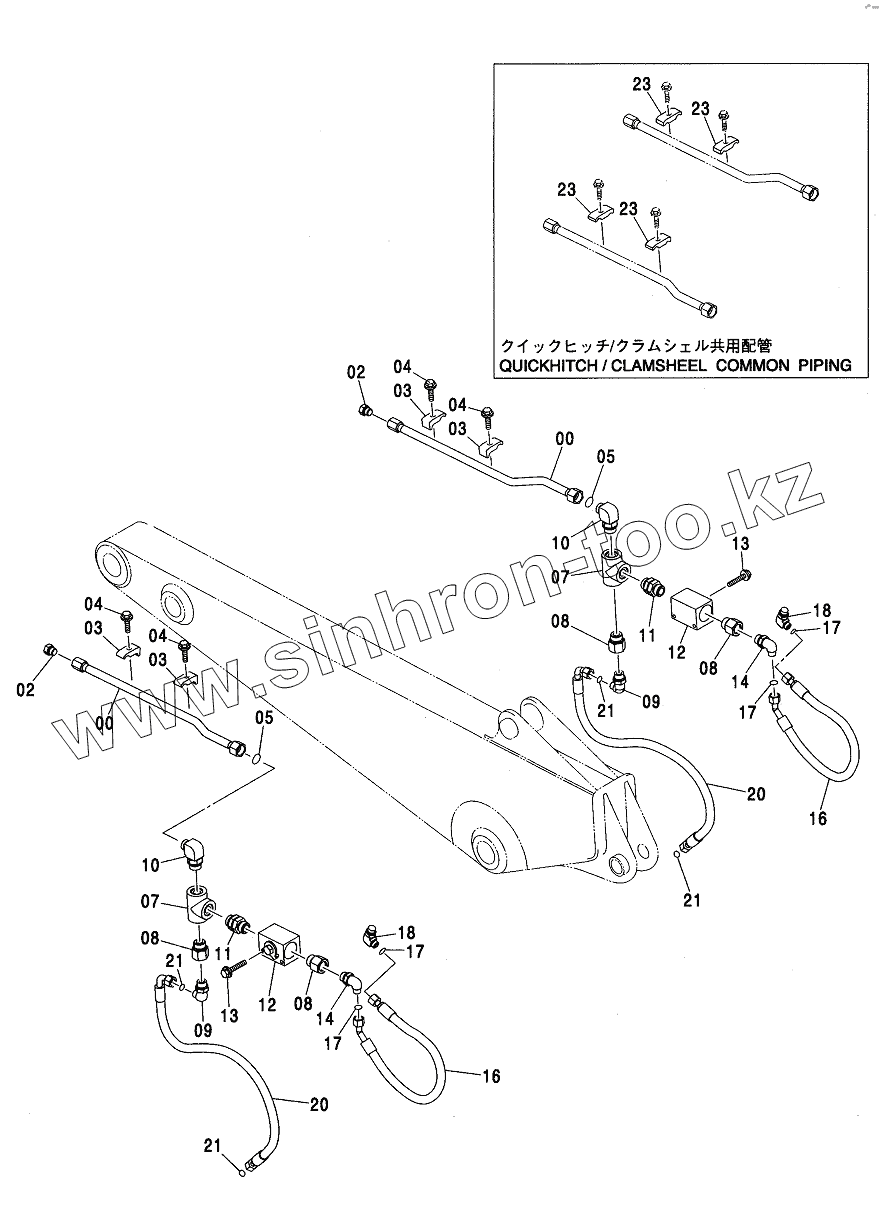 Каталог запасных частей к технике: Hitachi ZX-110. CLAMSHELL PIPING (1.96MARM)