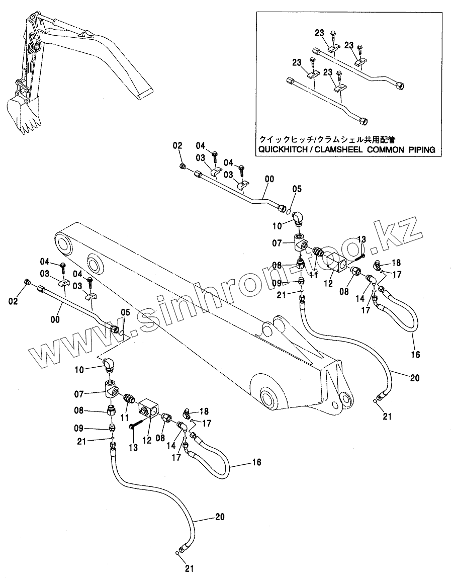 Каталог запасных частей к технике: Hitachi ZX-110. CLAMSHELL PIPING (2.26M ARM)
