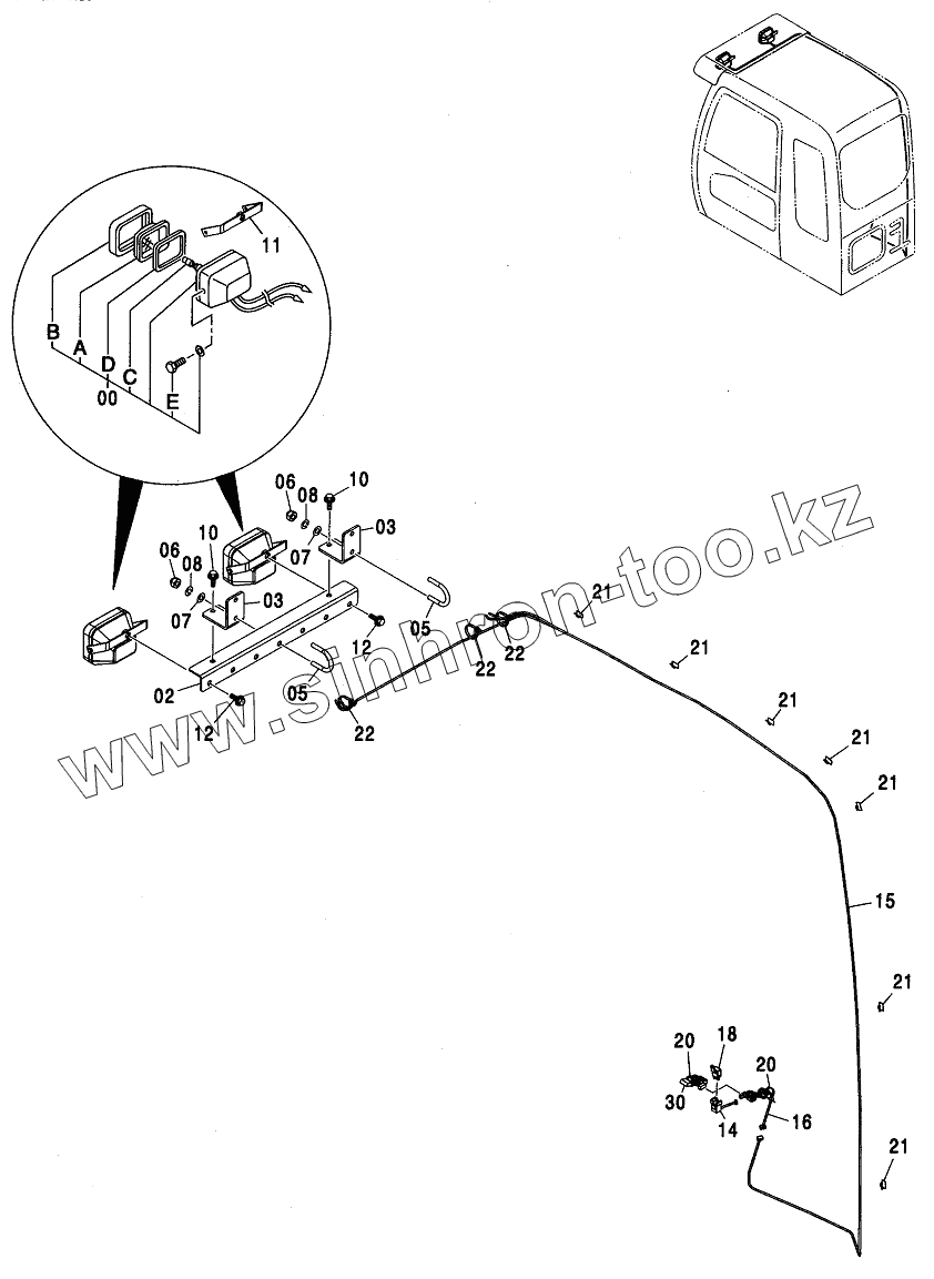 Каталог запасных частей к технике: Hitachi ZX-110. FRONT HEAD LAMP (2 LAMP WITH SUNSHADE)