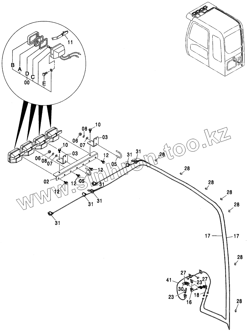 Каталог запасных частей к технике: Hitachi ZX-110. FRONT HEAD LAMP (4 LAMP WITH SUNSHADE)