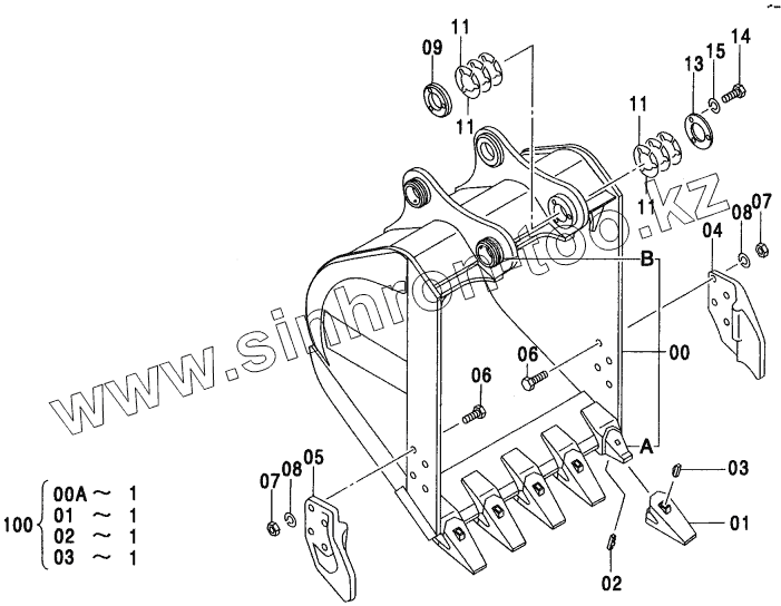 Каталог запасных частей к технике: Hitachi ZX-110. H BUCKET 0.5 (JIS 94)