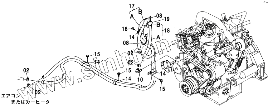 Каталог запасных частей к технике: Hitachi ZX-110. HEATER PIPING