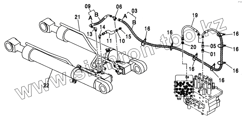 Каталог запасных частей к технике: Hitachi ZX-110. HOSE RUPTURE VALVE PIPING (B00M)
