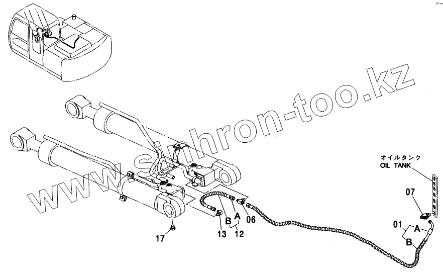 Каталог запасных частей к технике: Hitachi ZX-110. HOSE RUPTURE VALVE PIPING (BOOM)